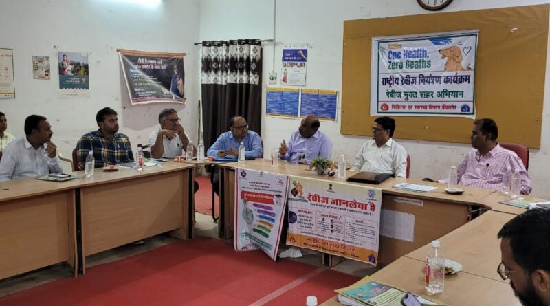 बीकानेर । रेबीज मुक्त बीकानेर अभियान के लिए अंतर विभागीय समन्वय समिति की बैठक स्वास्थ्य भवन सभागार में आयोजित हुई। बैठक में 2030 तक बीकानेर को रेबीज मुक्त जिला बनाने हेतु जयपुर से आए रेबीज नियंत्रण कार्यक्रम के राज्य नोडल अधिकारी डॉ एम एल सालोदिया की अध्यक्षता में गहन मंथन किया गया। डॉ सालोदिया ने विभाग वार की जाने वाले कार्य तथा जिम्मेदारियों का वर्गीकरण किया।