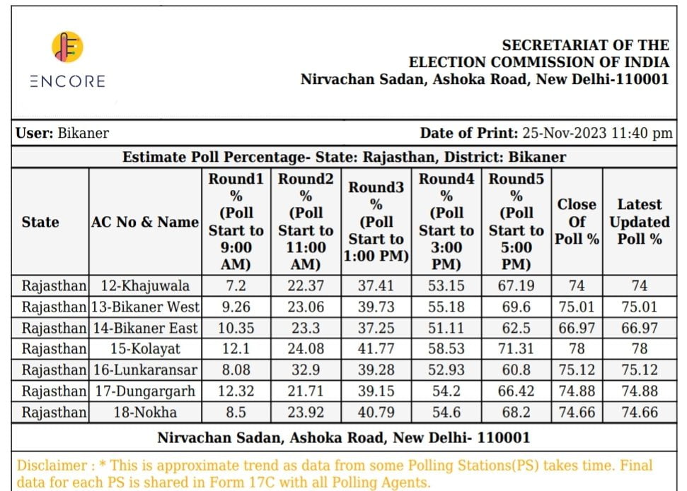 बीकानेर में मतदान पूर्ण, देखें फाइनल लिस्ट और जाने कहां कितना मतदान हुआ