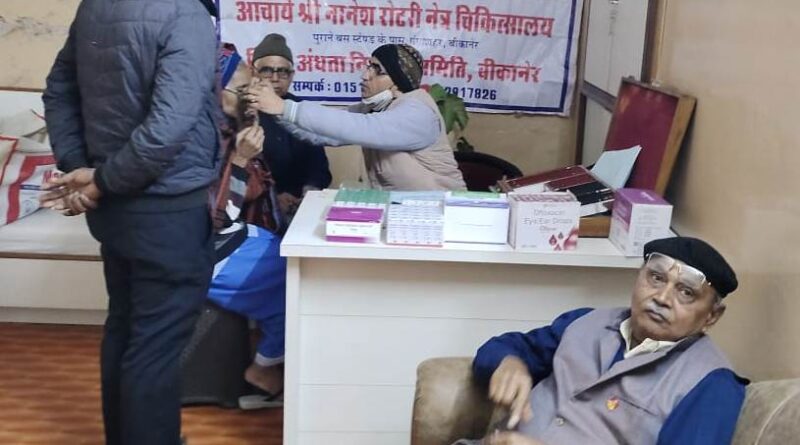 बीकानेर । रानी बाजार स्थित अपना घर आश्रम में असहाय प्रभुजनो के लिए निशुल्क नेत्र जांच चिकित्सा शिविर का आयोजन रोटरी क्लब बीकानेर द्वारा संचालित आचार्य श्री नानेश रोटरी नेत्र चिकित्सालय द्वारा रखा गया।