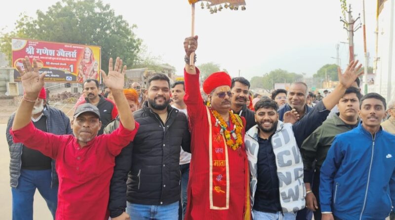 बीकानेर से देशनोक पैदल पहुंची डाक ध्वजा यात्रा