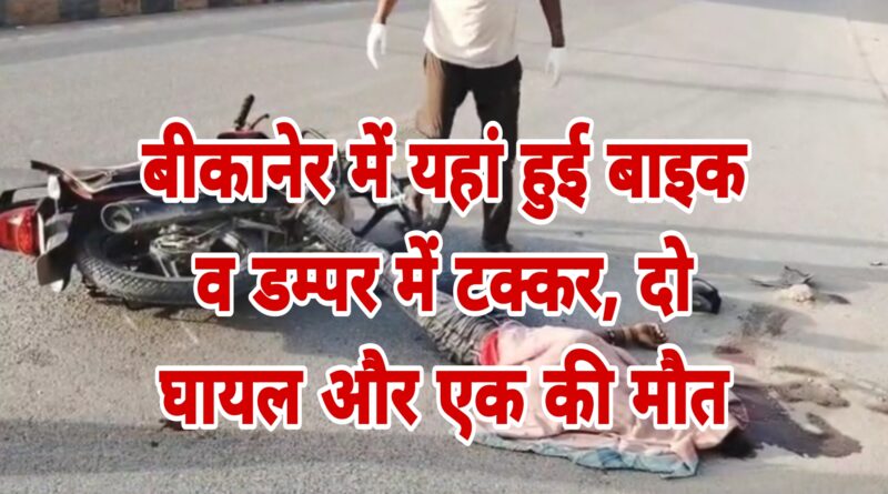 बीकानेर में यहां हुई बाइक व डम्पर में टक्कर, दो घायल और एक की मौत