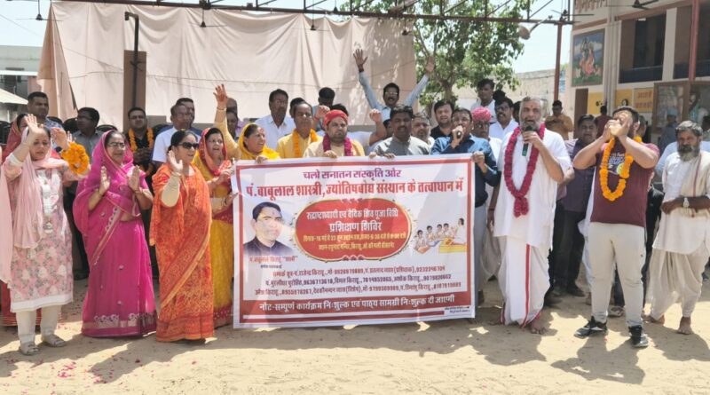 बीकानेर । बच्चों व युवाओं में लगातार बढ़ रहे सोशल मीडिया के उपयोग तथा सनातन संस्कृति के प्रति बढ़ती दूरी को देखते हुए पं बाबूलाल शास्त्री ज्योतिष बोध संस्थान की ओर से 40 दिवसीय रूद्राष्टाध्यायी व शिव पूजा विधि का प्रशिक्षण शिविर लगाया जा रहा है। पं बाबूलाल शास्त्री ज्योतिष बोध संस्थान की ओर से लगाये जा रहे प्रशिक्षण शिविर के बैनर का विमोचन मंगलवार को डूडी पेट्रोल पंप के पास स्थित गंगा जुबली पिंजरा प्रोल गौशाला में समाजसेवी देवकिशन चांडन देवश्री, विनोद गोयल,नंदकिशोर चांडक व मगन चांडक के कर कमलों से किया गया।