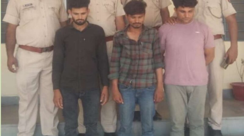 इन्हें किया गिरफ्तार : – 01. कैलाश बिश्नोई उर्फ कैलिया पुत्र श्रवण कुमार जाति बिश्नोई उम्र 23 साल निवासी जीवन नाथ जी बगीची के पास जम्भेश्वर नगर पुलिस थाना नयाशहर जिला बीकानेर 02 श्यामसुन्दर पुत्र श्रवणराम जाति बिश्नोई उम्र 20 साल निवासी जीवन नाथ जी बगीची के पास जम्भेश्वर नगर पुलिस थाना नयाशहर 03. घनश्याम सोनी पुत्र प्रेम रतन जाति सोनी उम्र 37 साल निवासी भैरूजी मंदिर के पास सर्वोदय बस्ती पुलिस थाना मुक्ताप्रसाद नगर जिला बीकानेर हाल चतुर्थ श्रेणी कर्मचारी सार्वजनिक निर्माण विभाग उपखण्ड प्रथम बीकानेर।