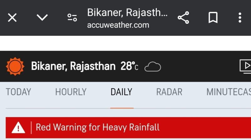 मौसम विभाग की बीकानेर में भारी बारिश की चेतावनी