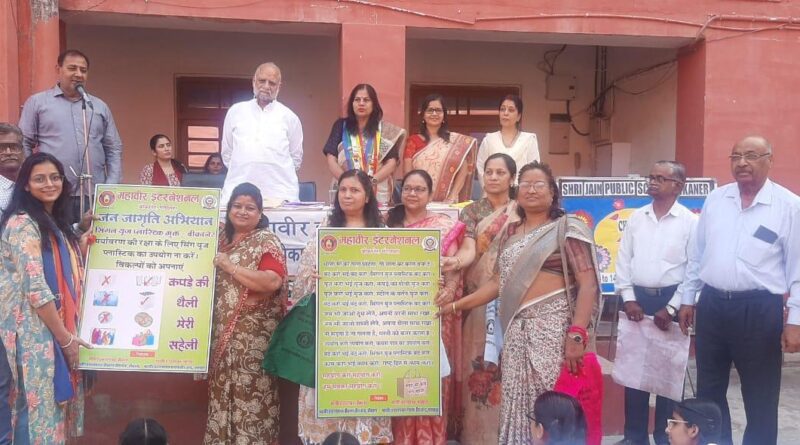 बीकानेर। बाल सप्ताह के उपलक्ष्य में 13 नवंबर 2024 को श्री जैन पब्लिक स्कूल के प्रांगण में महावीर इंटरनेशनल संस्था द्वारा ‘कपड़े की थैली मेरी सहेली’ अभियान के अंतर्गत सिंगल यूज प्लास्टिक मुक्त बीकाणा विषय पर संगोष्ठी आयोजित की गई। इस अवसर पर महावीर इंटरनेशनल संस्था के सम्माननीय सदस्यों का स्वागत एवं अभिनंदन किया गया।