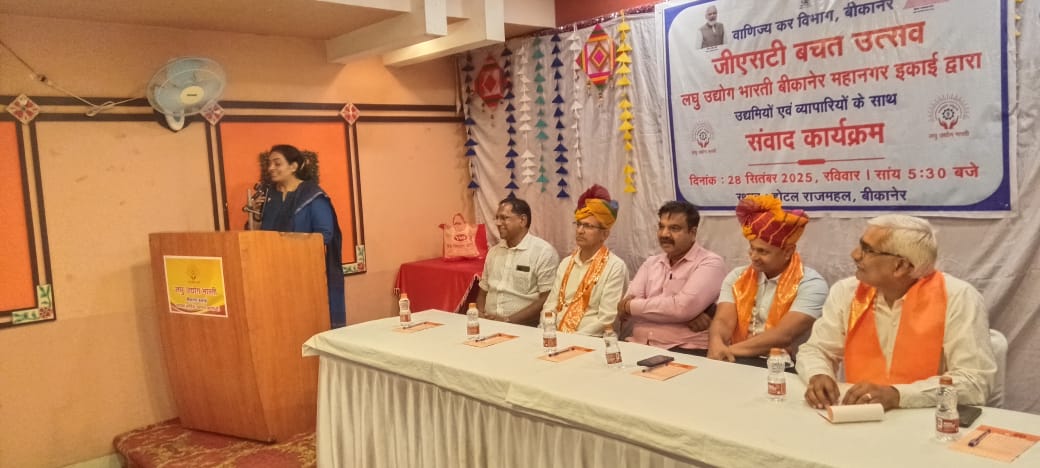 बीकानेर। लघु उद्योग भारती बीकानेर महानगर इकाई एवं वाणिज्य कर विभाग द्वारा जीएसटी बचत उत्सव 2025 के तहत उद्यमियों के साथ संवाद कार्यक्रम का आयोजन किया गया।
