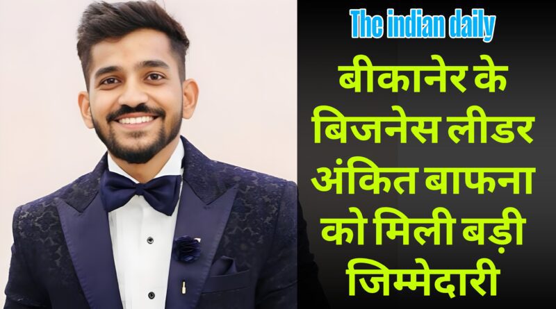 बीकानेर। बीकानेर के युवा उद्यमी अंकित बाफना को अन्तर्राष्ट्रीय वैश्य महासम्मेलन यूथ विंग में प्रदेश मंत्री पद की जिम्मेदारी सौंपी गई है। यह घोषणा यूथ विंग के प्रदेश अध्यक्ष मनीष गुप्ता ने की। इस अवसर पर प्रदेश महामंत्री केदार गुप्ता भी उपस्थित रहे।