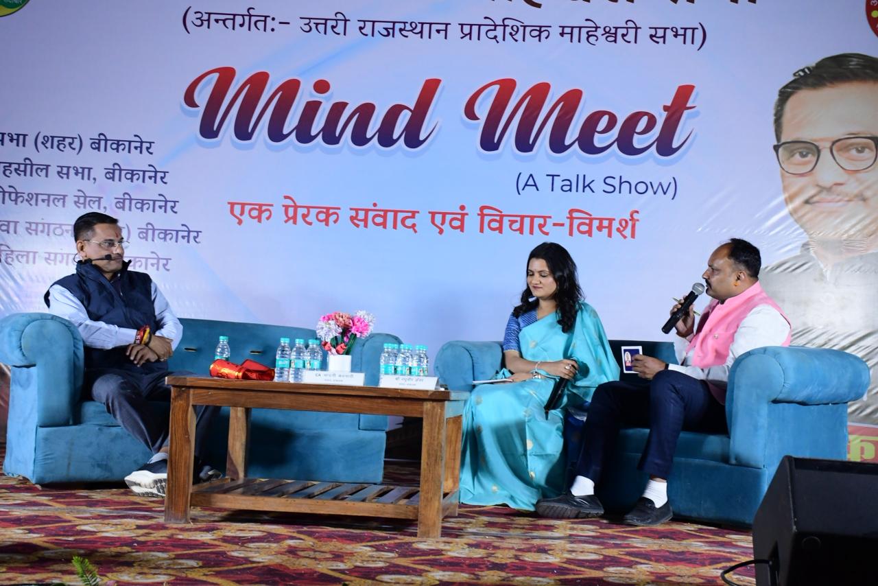 बीकानेर। अखिल भारतीय माहेश्वरी महासभा के सभापति संदीप काबरा के साथ संवाद कार्यक्रम “Mind Meet – एक सोच, एक संवाद” ने बीकानेर में समाज को नई दिशा देने वाला ऐतिहासिक क्षण रचा। महेश्वरी पब्लिक स्कूल का सभागार खचाखच भरा रहा, जहाँ लगभग 500 से अधिक परिवारों ने उत्साहपूर्वक भागीदारी दर्ज कराई।