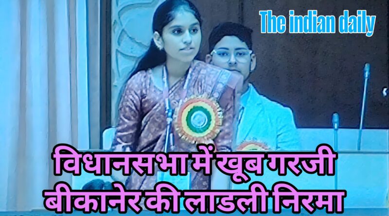 बीकानेर। राजस्थान विधानसभा में बीकानेर जिले की एक छात्रा ऐसी गरजी की उसकी गूंज ने पूरे सदन को हिला दिया। यह गूंज थी जिले के पांचू गांव की राजकीय उच्च माध्यमिक विद्यालय बंधड़ा स्कूल की छात्रा निरमा की। मौका था राजस्थान विधानसभाा में प्रबल कार्यक्रम के तहत सोमवार को आयोजित राजस्थान युवा सभा का। होनहार छात्रा निरमा ने अपनी बेबाक, सशक्त एवं प्रेरणादायक शब्दों से सधी आवाज में पूरे सदन का माहौल ही बदल दिया। निरमा की इस प्रस्तुति ने विद्यालय, गांव एवं संपूर्ण क्षेत्र को गौरवान्वित कर दिया।