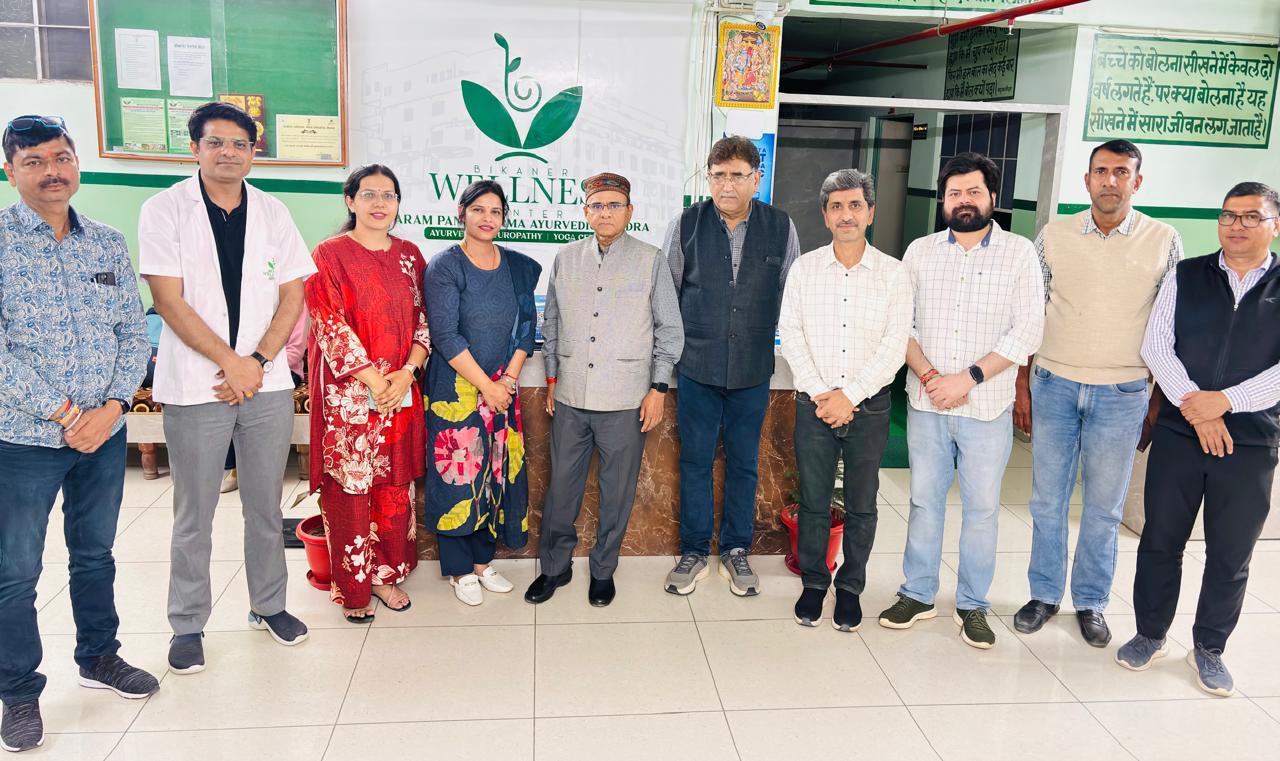 बीकानेर वेलनेस सेंटर के निदेशक अनिल जुनेजा एवं डॉ. वत्सला गुप्ता ने सेंटर की कार्यप्रणाली, उपचार पद्धतियों, उपलब्ध सुविधाओं और अनुसंधान की संभावनाओं की विस्तृत जानकारी दी। उन्होंने बताया कि सेंटर में पंचकर्म, षट्क्रिया, विरेचन, योग, मानसिक स्वास्थ्य सहित अनेक समग्र थेरेपी सेवाएं रोगियों को प्रदान की जा रही हैं।