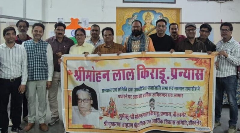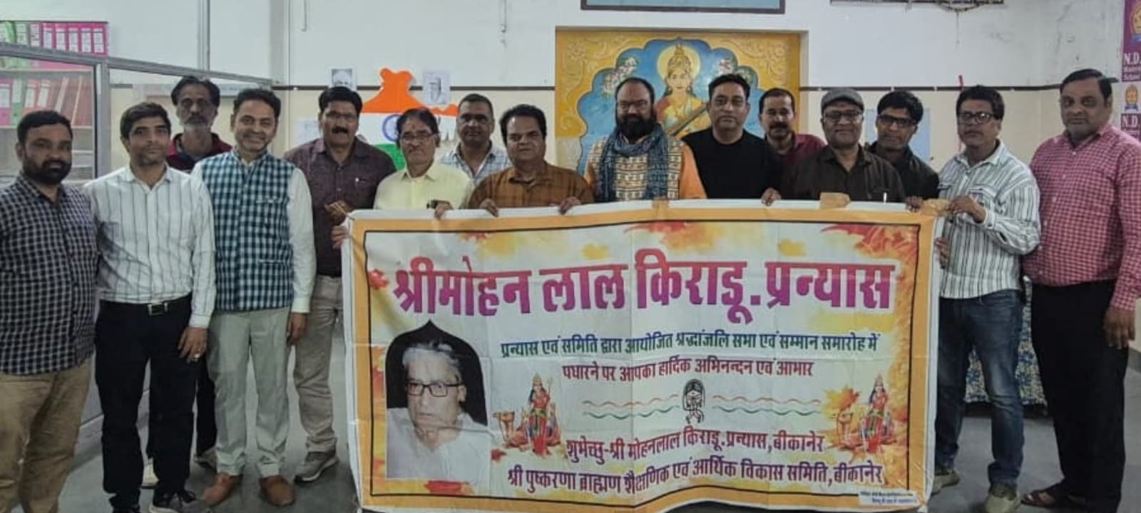 बीकानेर। मोहन लाल किराडू प्रन्यास एवं पुष्करणा ब्राह्मण शैक्षणिक एवं आर्थिक विकास समिति, बीकानेर के संयुक्त तत्वावधान में मोहन लाल किराडू की पंचम पुण्यतिथि पर आयोजित होने वाले श्रद्धांजलि एवं सम्मान समारोह को लेकर एक महत्वपूर्ण बैठक आयोजित की गई। यह कार्यक्रम आगामी 31 मार्च को पुष्करणा भवन में आयोजित किया जाएगा।