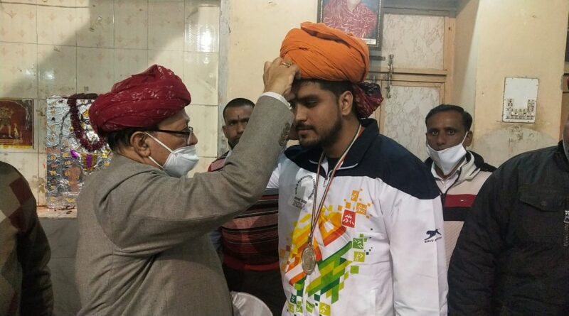 अन्तरराष्ट्रीय पावर लिफ्टर बालकृष्ण पुरोहित को ऊर्जा मंत्री डाॅ कल्ला ने किया सम्मानित